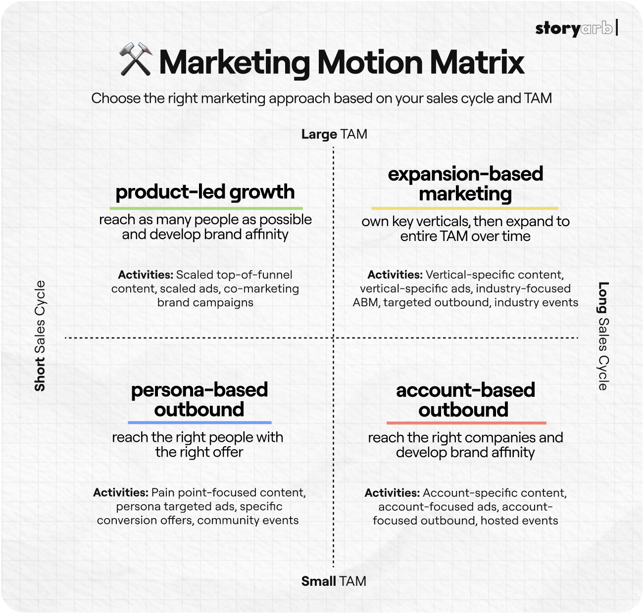 Step 1: Identify the 2–3 marketing motions that will help move the needle for your business, based on sales cycle length and total addressable market.